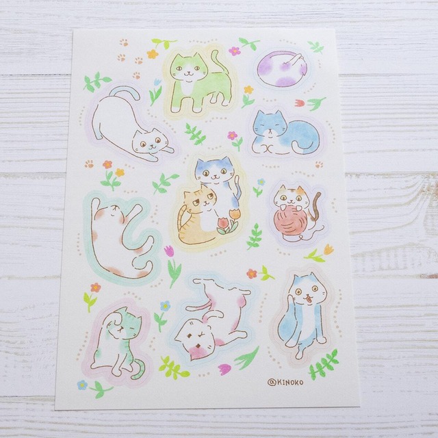 いろんなねこ シール B6 / グッズ シール イラスト 猫 絵本風