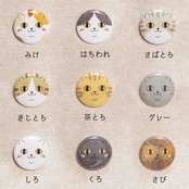 猫の顔がいっぱいに描かれた豆缶バッジ。