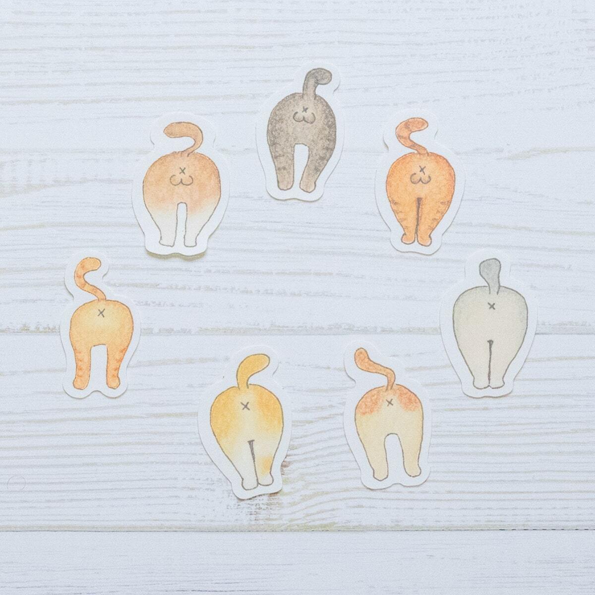 かわいいにゃんこのおしり、ねこけつが7種類のフレークシールセットが登場しました。