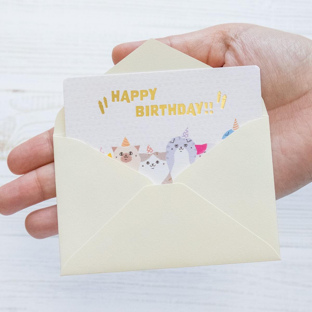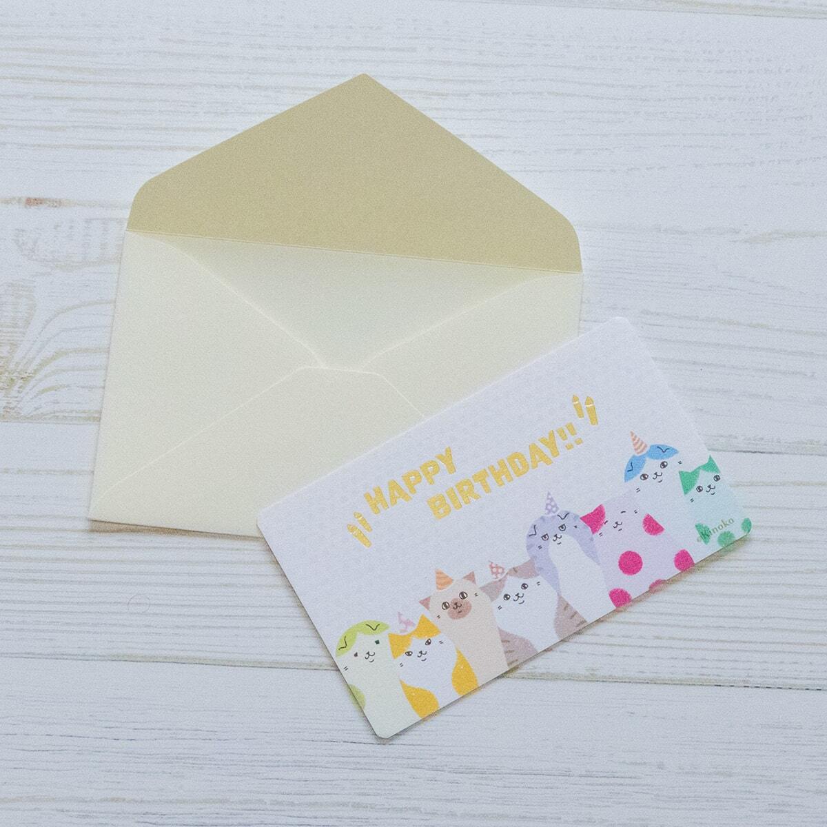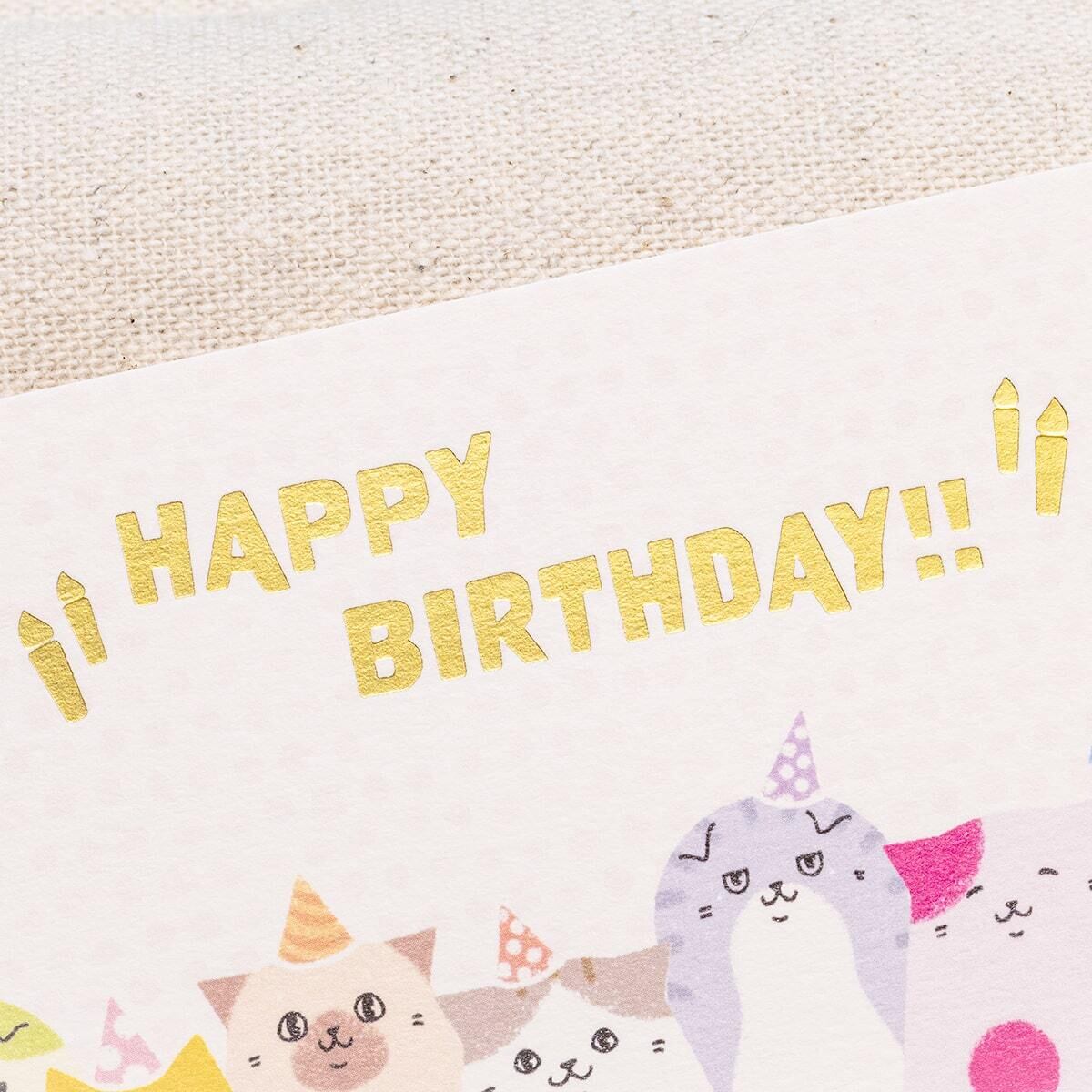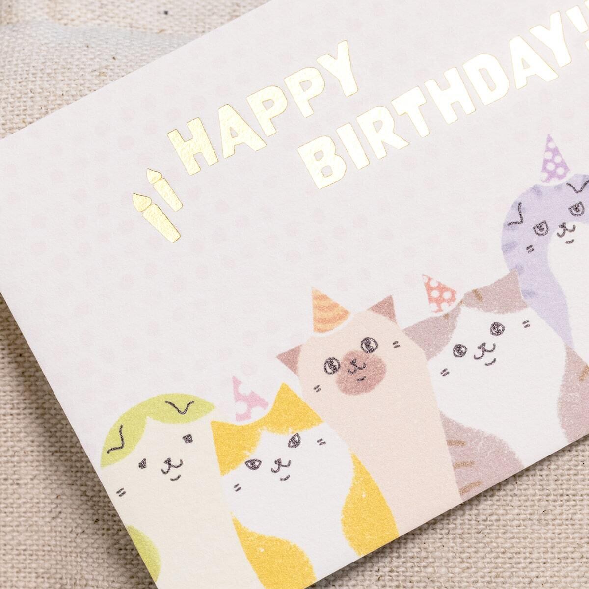 にゃんこが並んでお祝いをしてくれているようなバースデーカード。