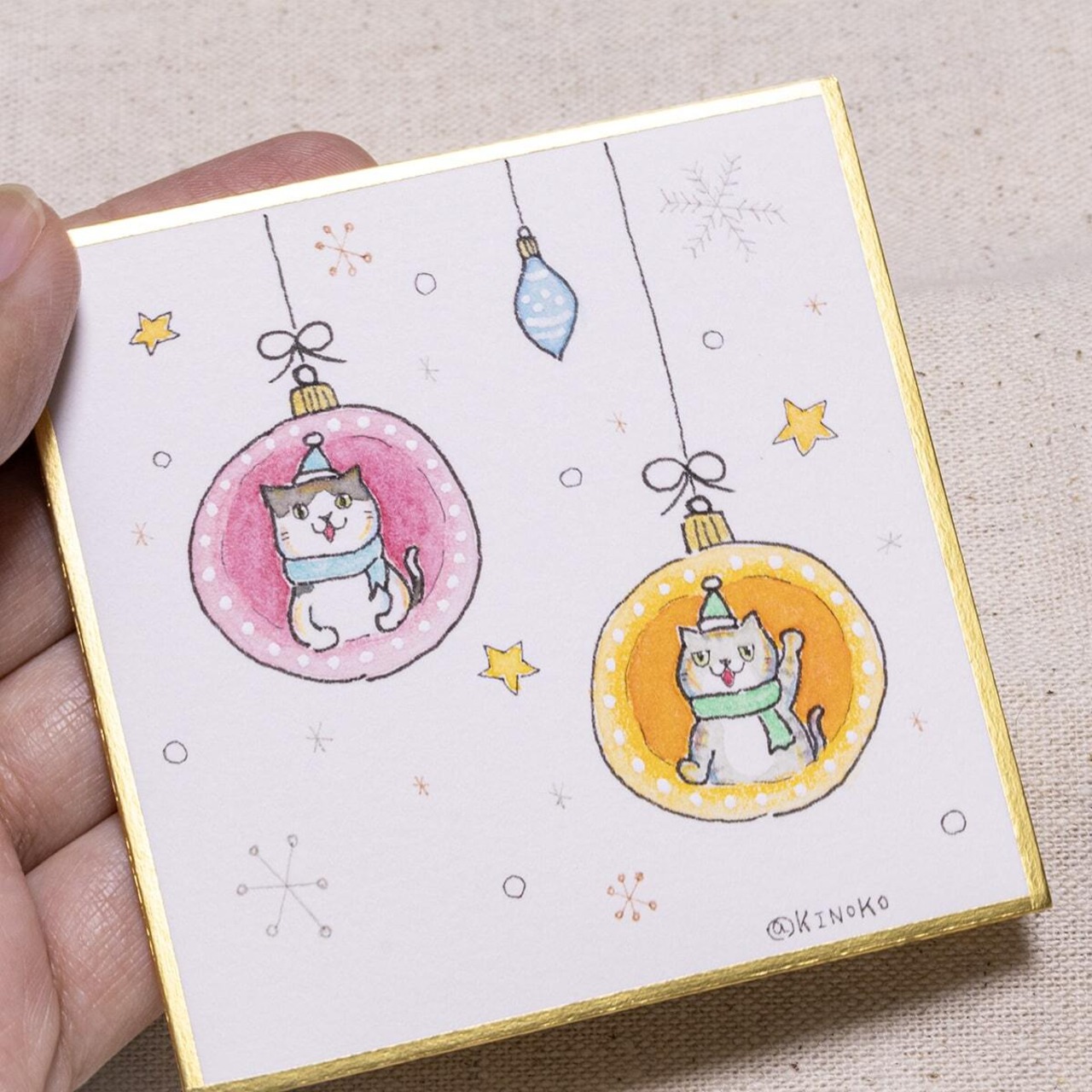 可愛らしい猫たちが描かれた水彩イラストは、特に猫好きやクリスマスファンにはたまらないアイテムです。