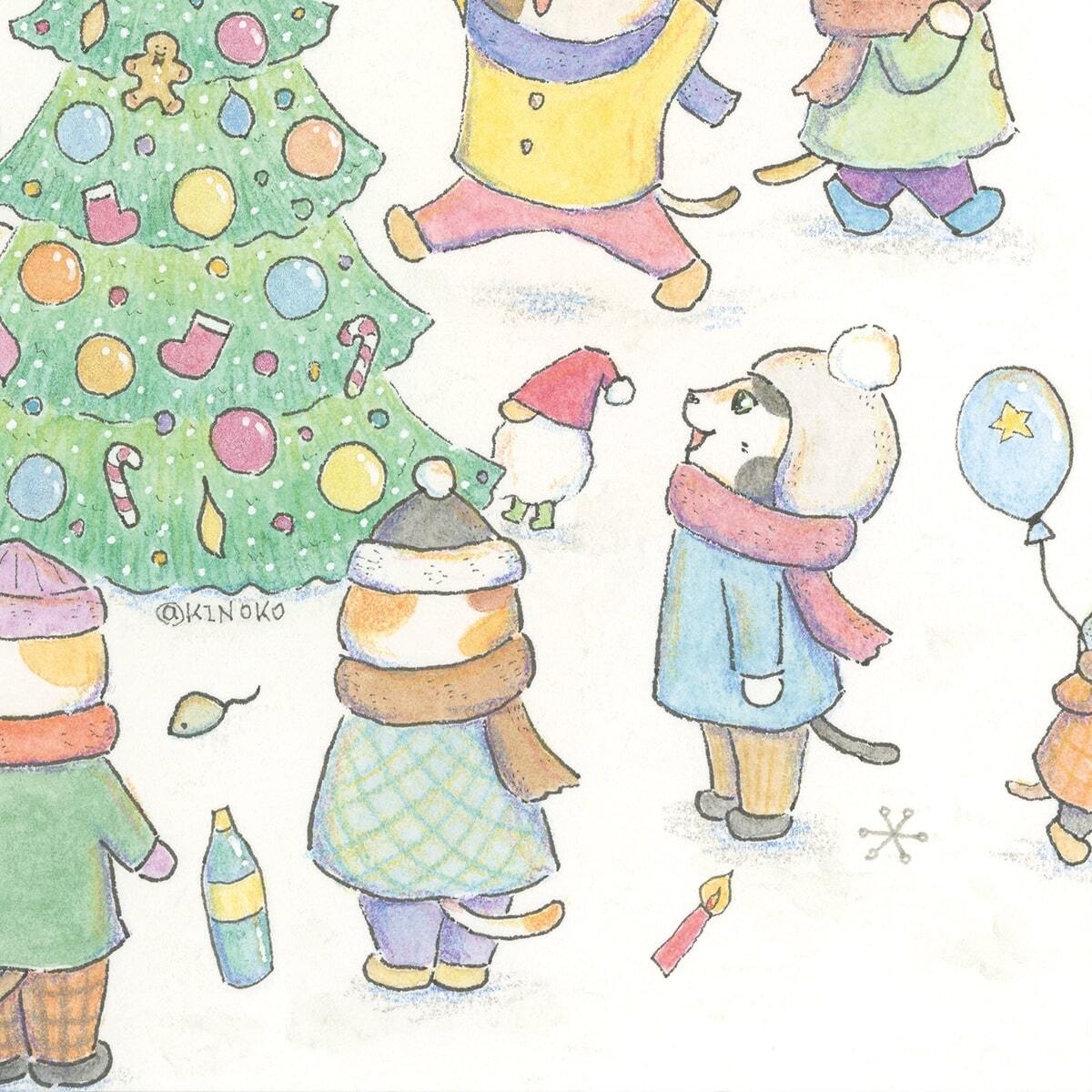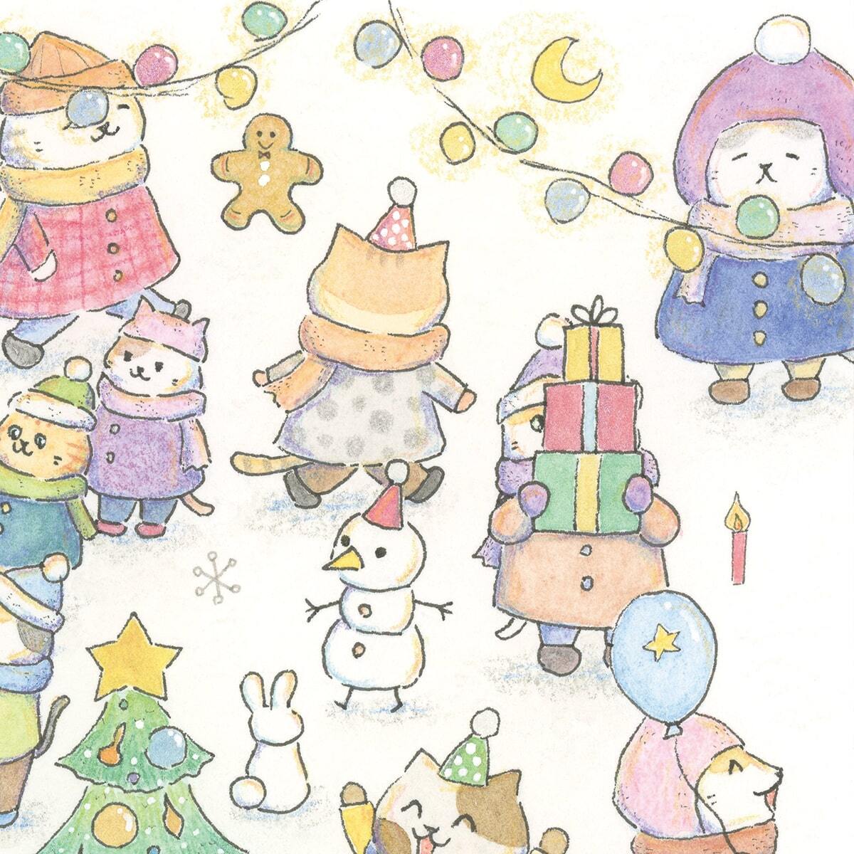 猫 ねこ ネコ cat にゃんこ ペット かわいい 可愛い カワイイ Christmas Xmas クリスマス ポストカード postcard メッセージカード グッズ goods インテリア イラスト アート おしゃれ 絵画 水彩 複製画 雑貨