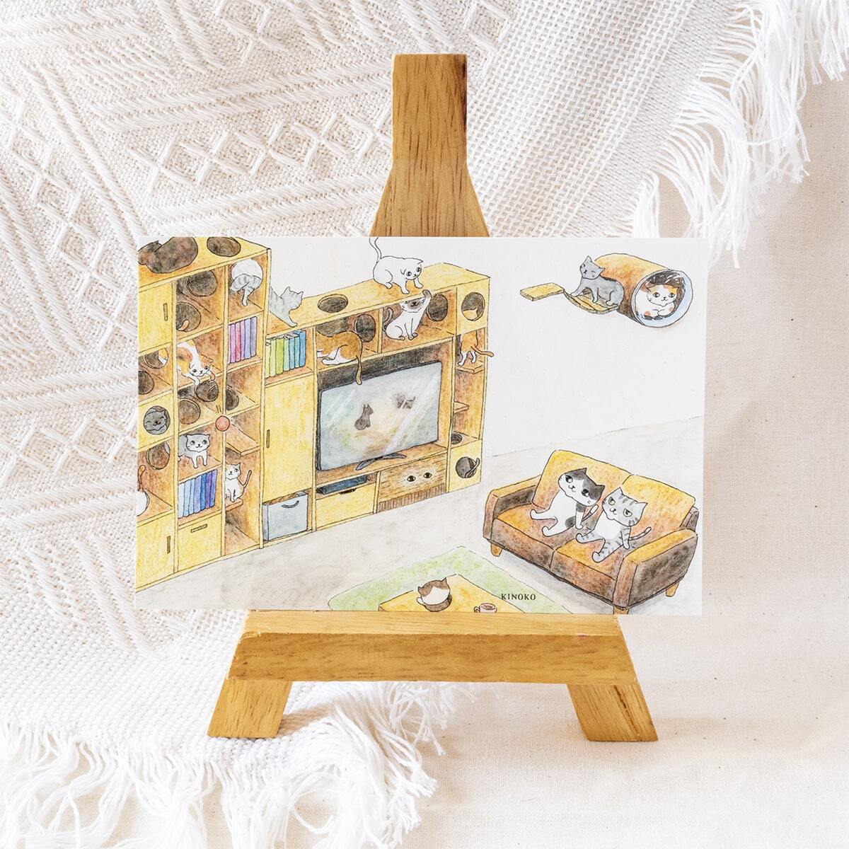 猫 ねこ ネコ cat にゃんこ ペット かわいい 可愛い カワイイ 猫部屋 ポストカード postcard メッセージカード グッズ goods インテリア イラスト アート おしゃれ 絵画 水彩 複製画 雑貨 小物 メッセージ カード ギフト