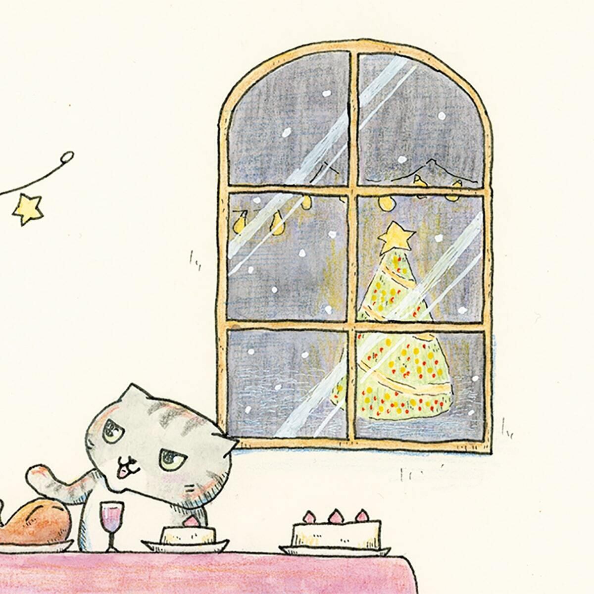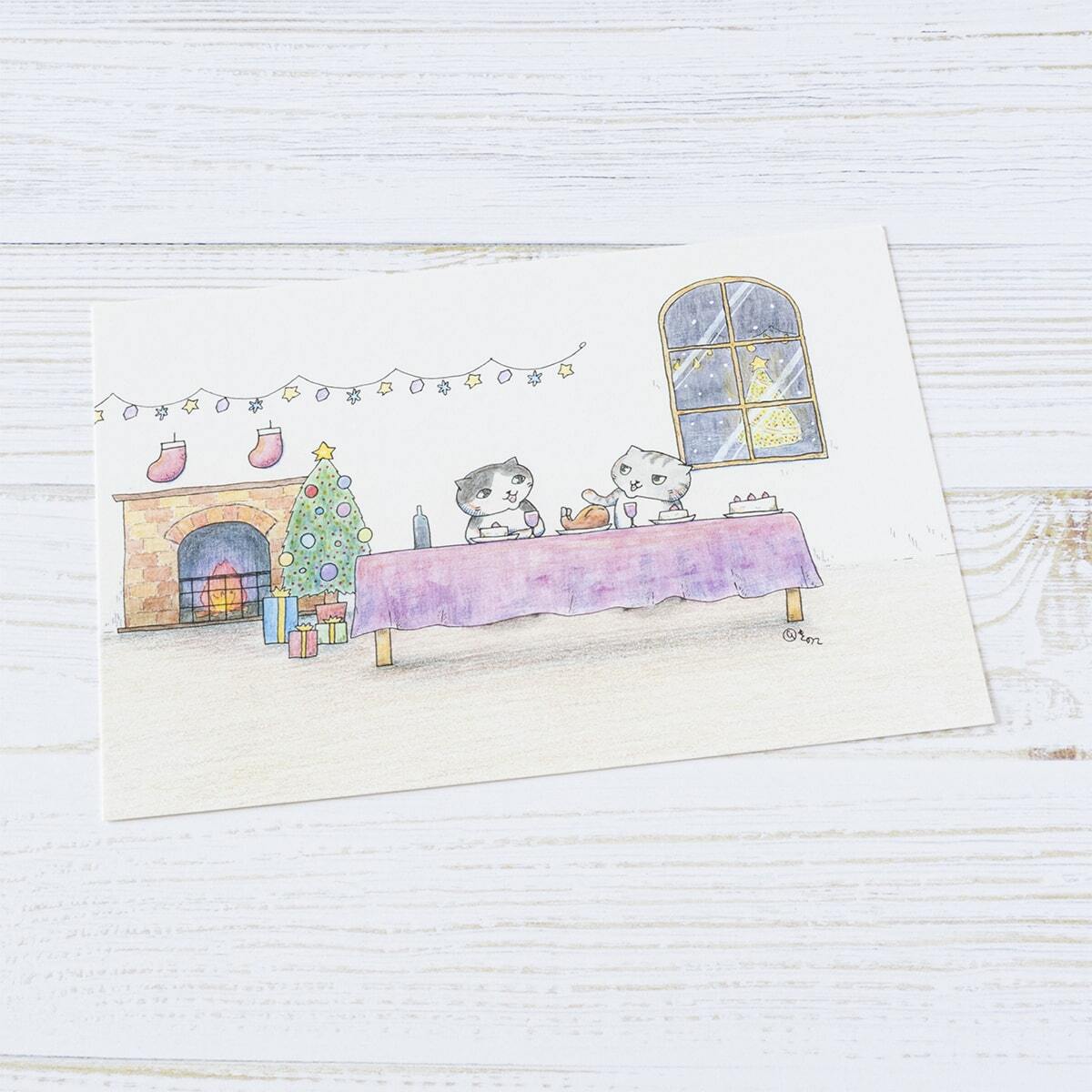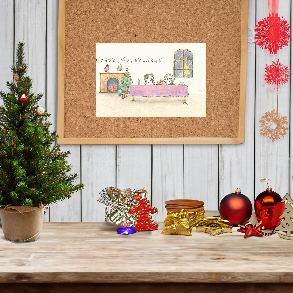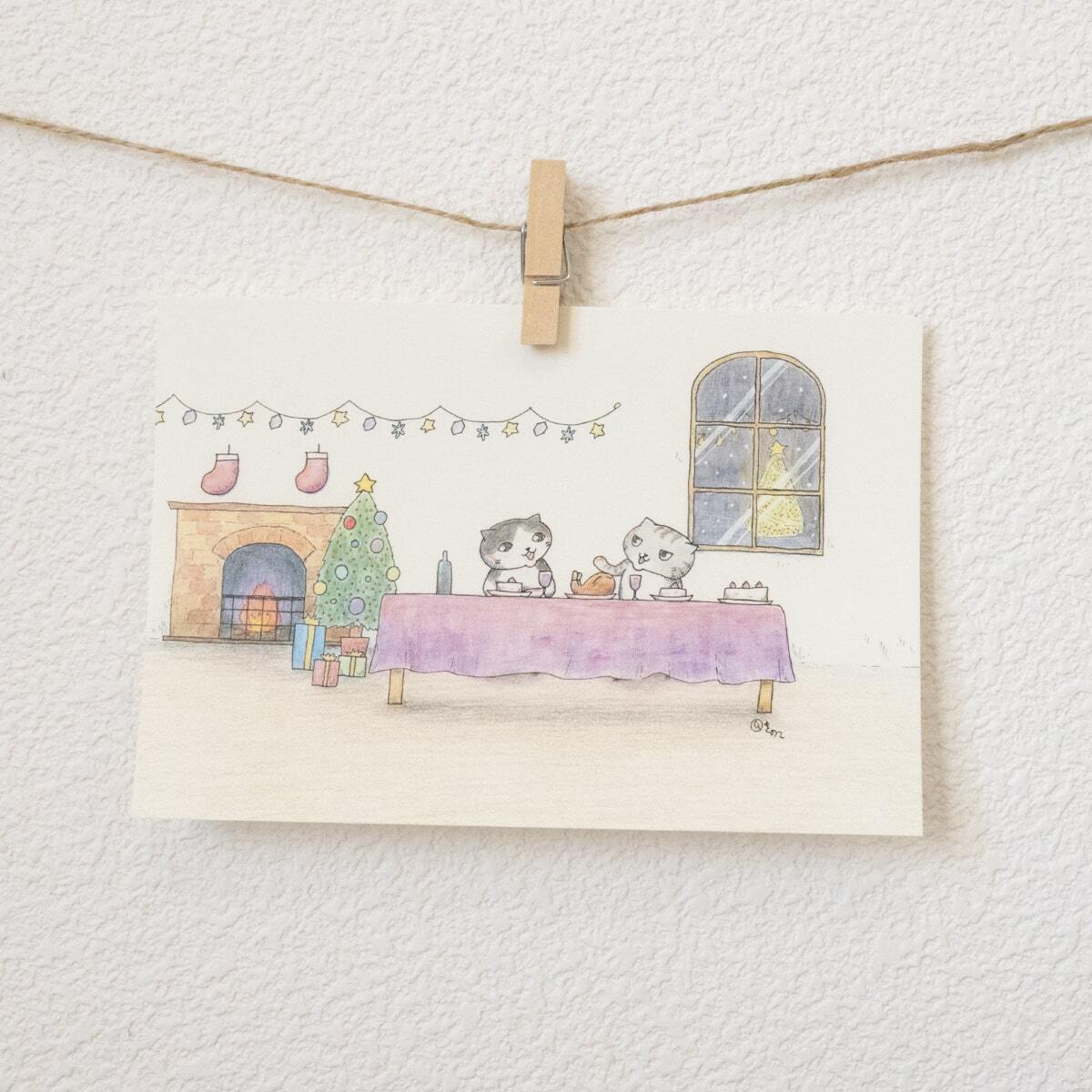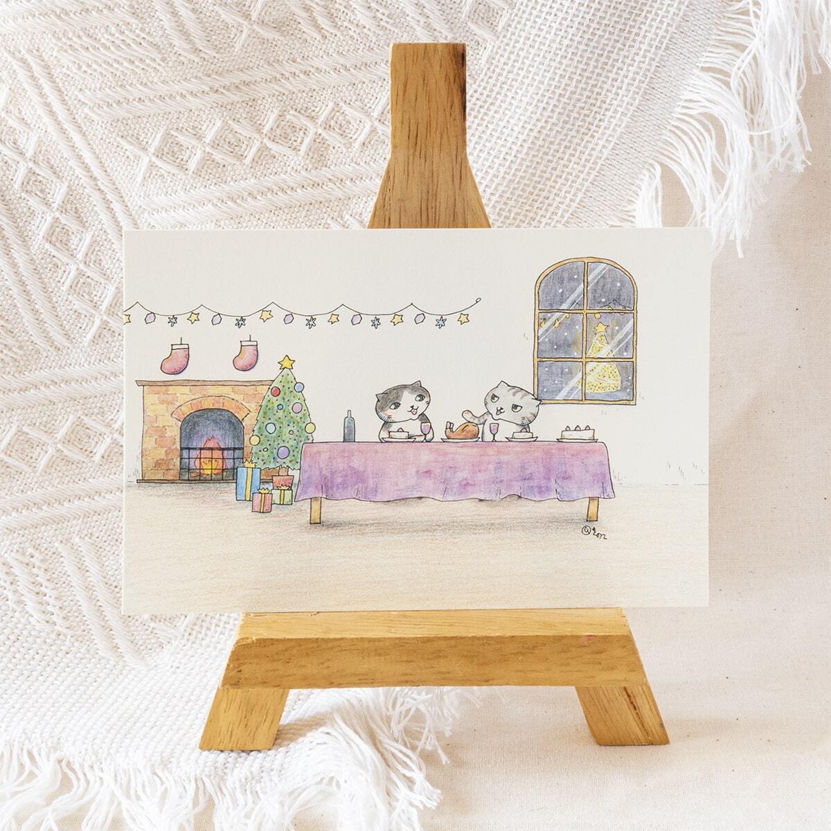 猫 ねこ ネコ cat にゃんこ ペット かわいい 可愛い カワイイ Christmas Xmas クリスマス ポストカード postcard メッセージカード グッズ goods インテリア イラスト アート おしゃれ 絵画 水彩 複製画 雑貨