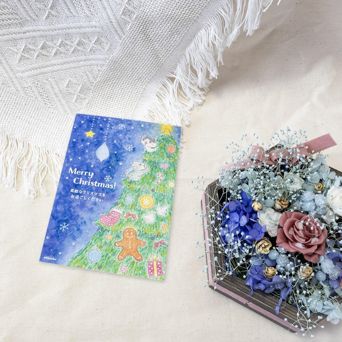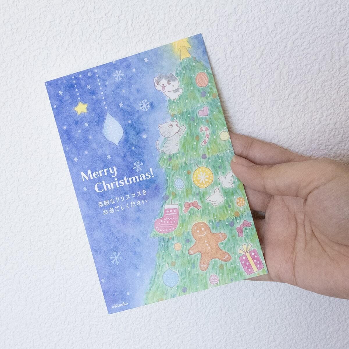 猫 ねこ ネコ cat にゃんこ ペット かわいい 可愛い カワイイ Christmas Xmas クリスマス ポストカード postcard メッセージカード グッズ goods インテリア イラスト アート おしゃれ 絵画 水彩 複製画 雑貨