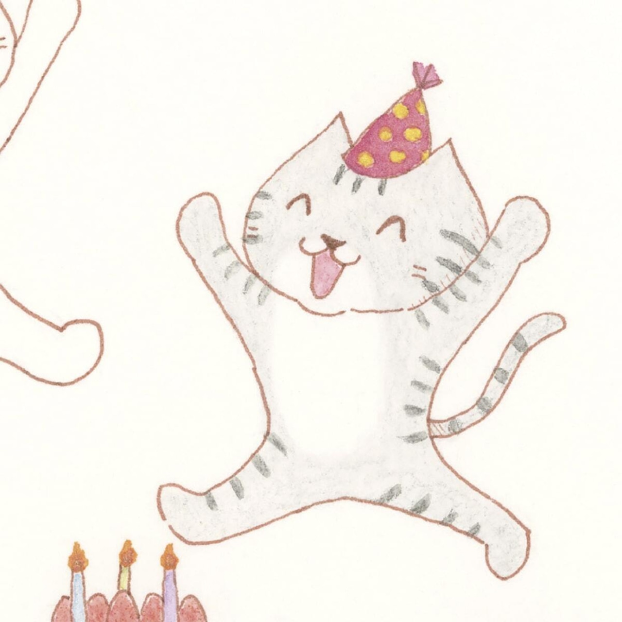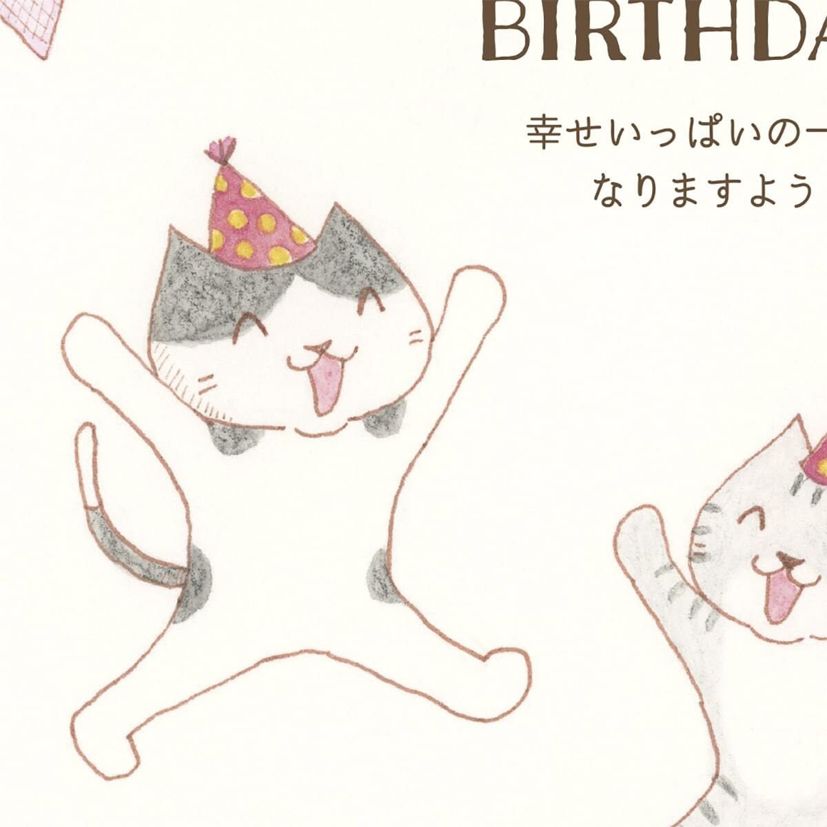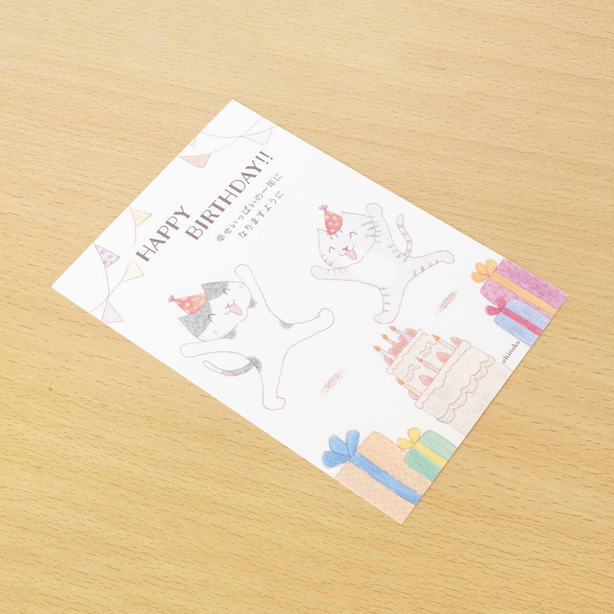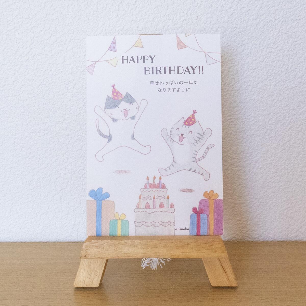 愛らしい猫たちがお祝いの気持ちを伝える誕生日カードです。