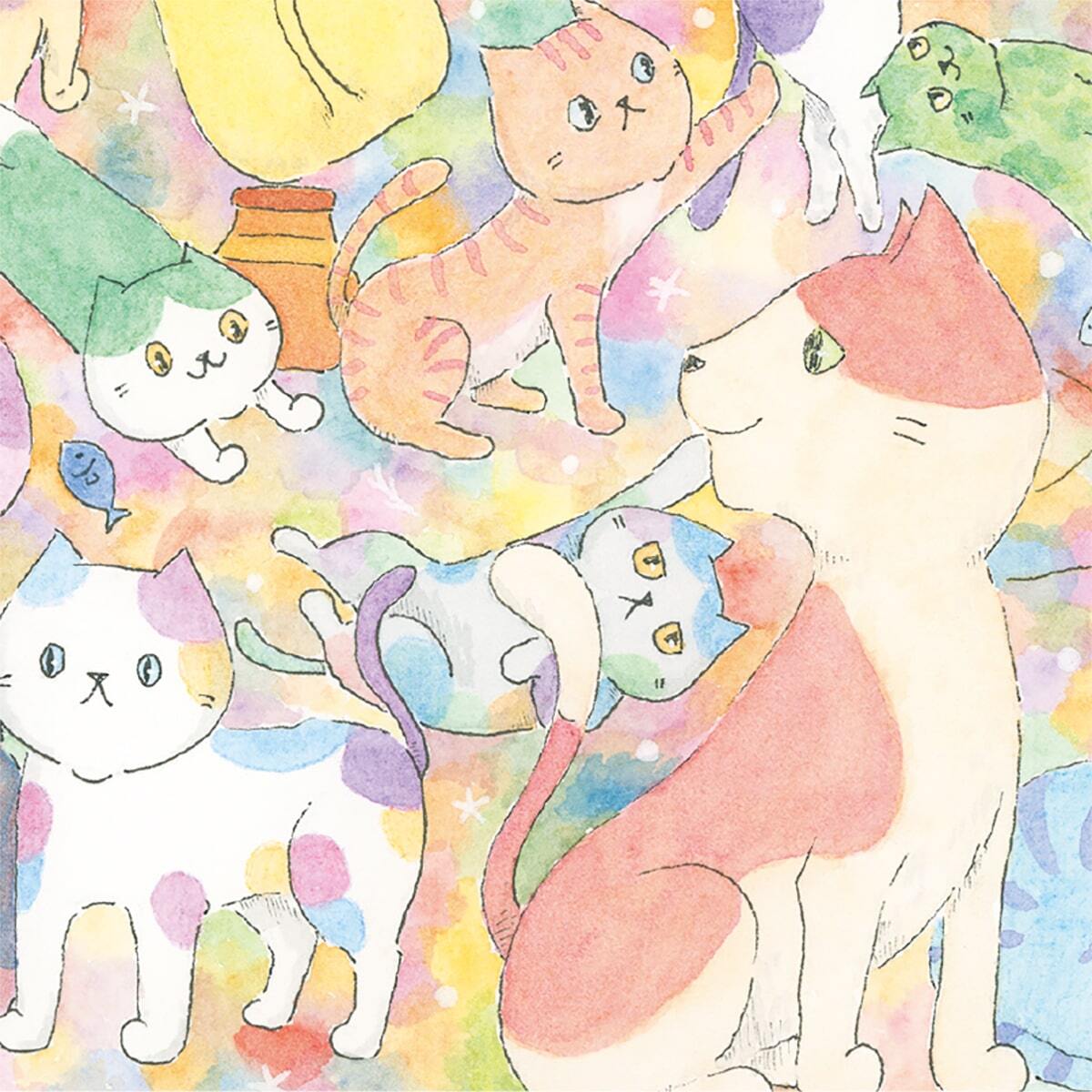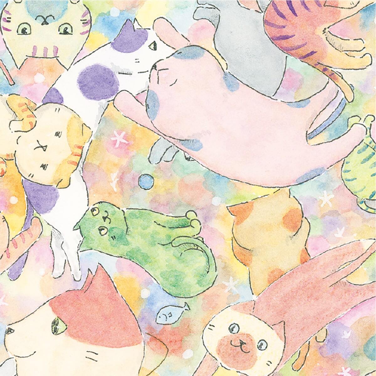 この水彩で描かれたカラフルなイラストは、まるで絵本の1ページから飛び出してきたかのような、ゆるかわな雰囲気が魅力です。
