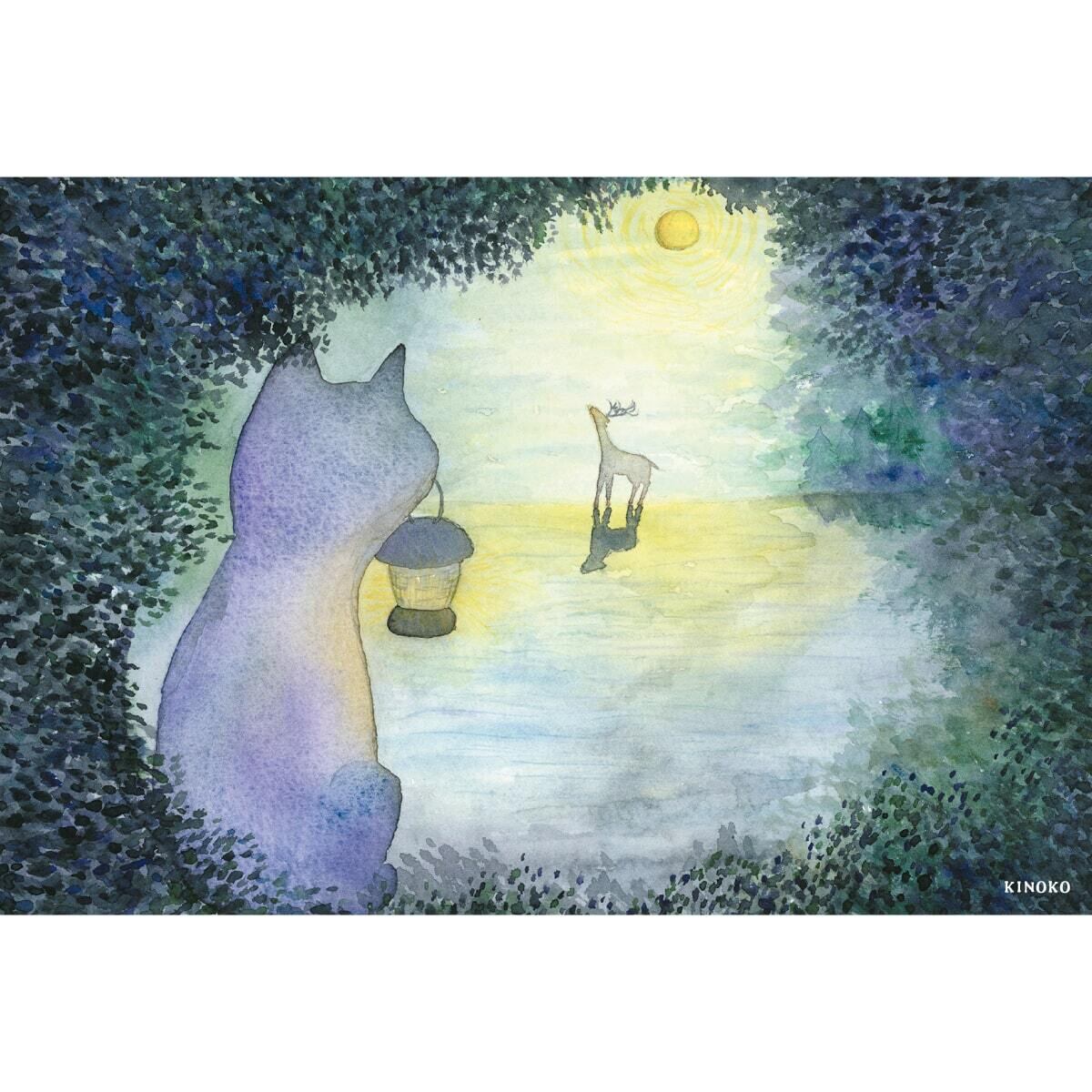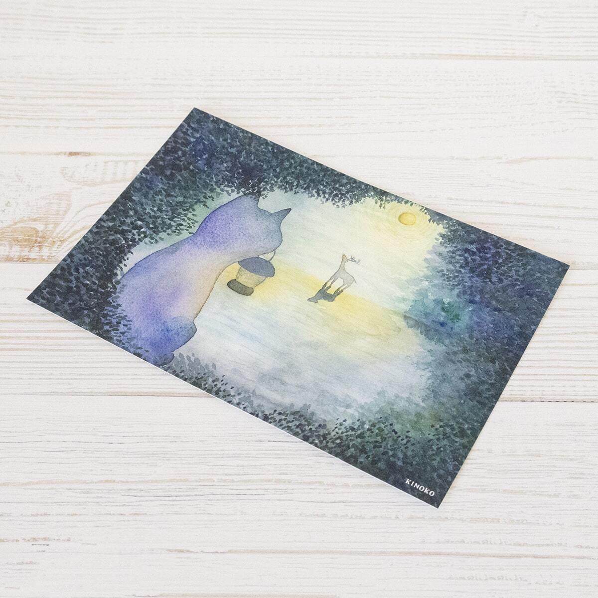 このポストカードは、手紙や特別な贈り物に添えることで、受け取った方の日常に幻想的な夜の森の世界をプラスします。