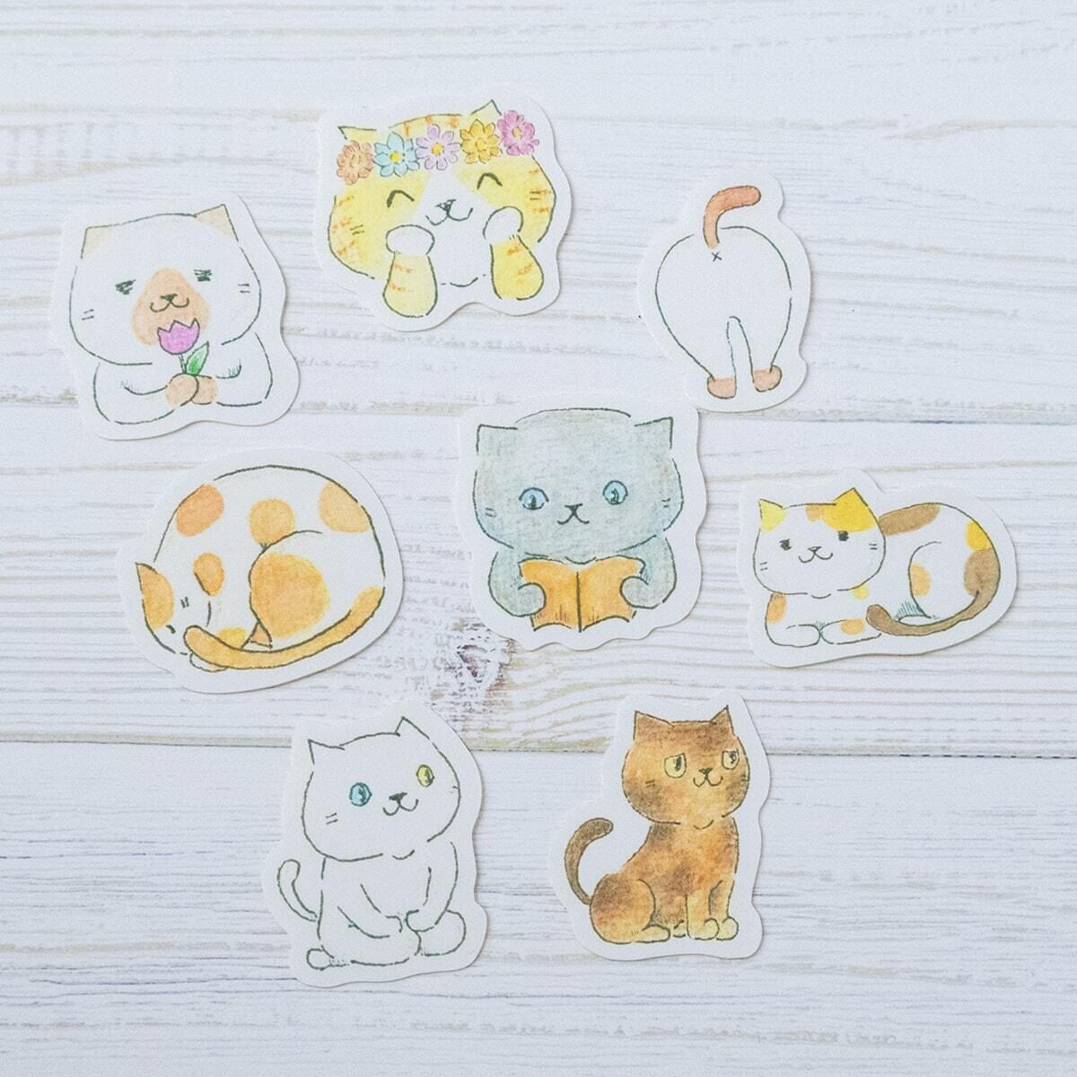 心癒される愛らしいにゃんこの姿で、8種類のフレークシールセットが登場しました。